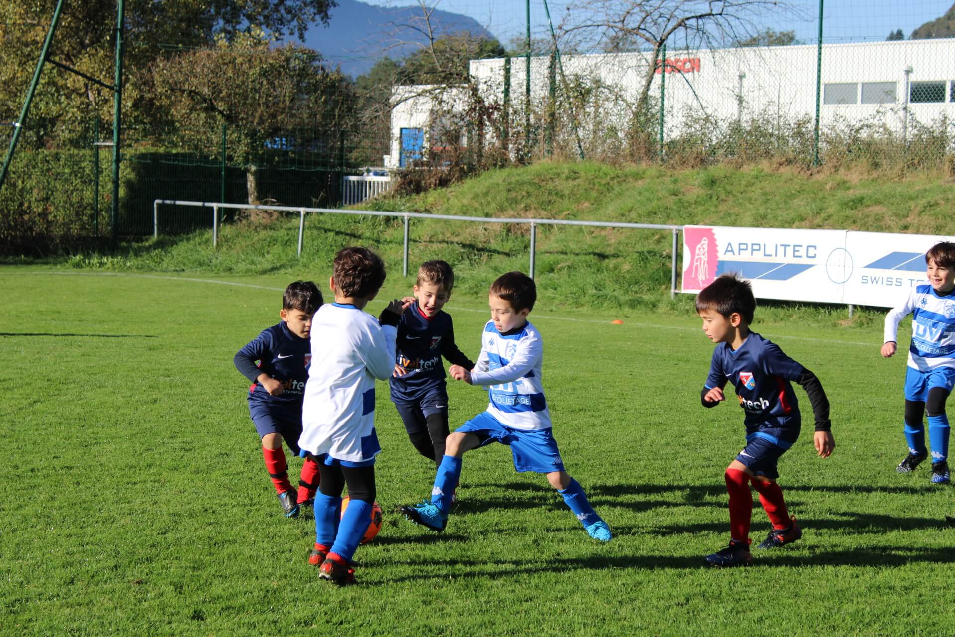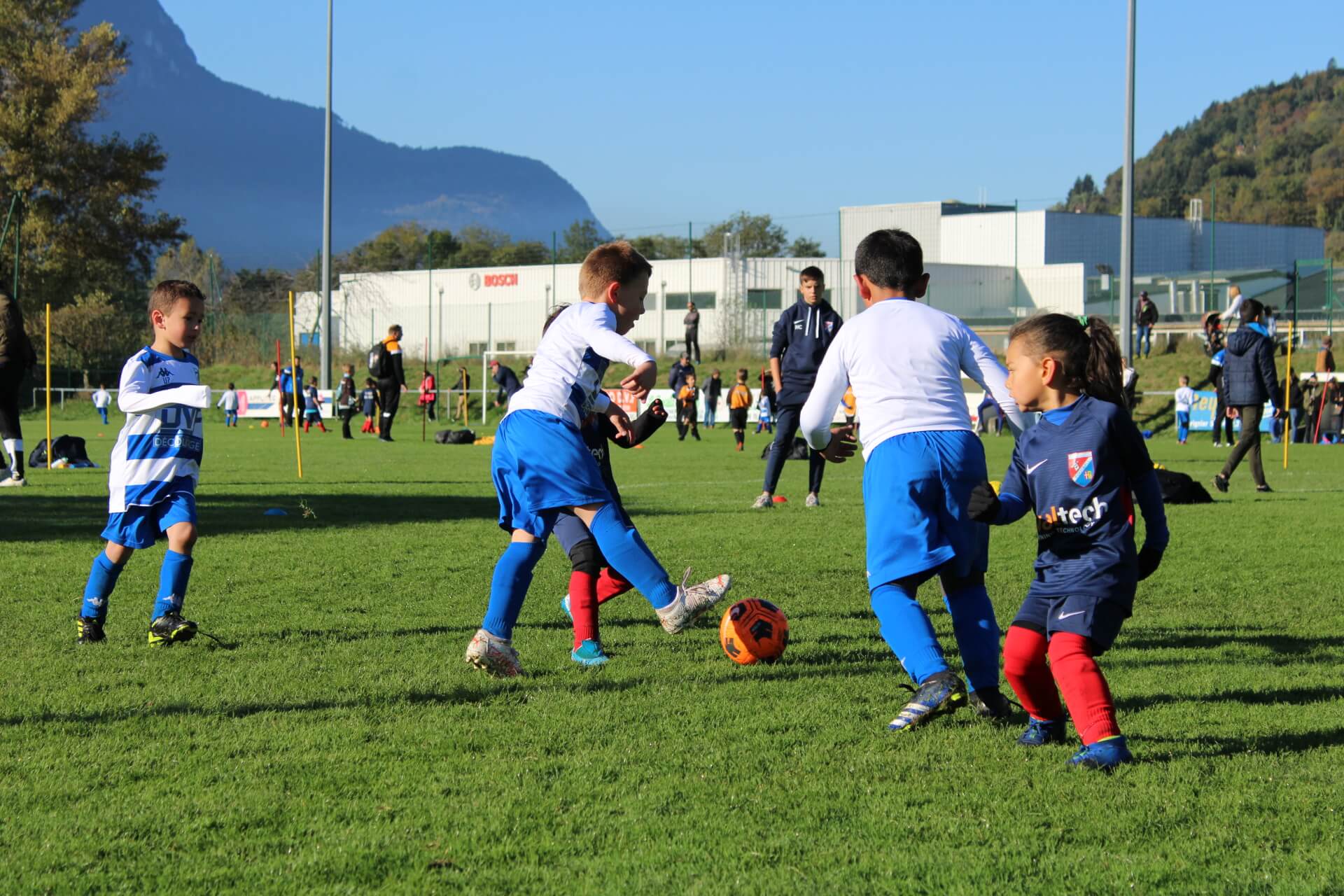 Des rencontres en petits groupes (3 contre 3 ou 4 contre 4) leur permettent de goûter à la joie du match, de marquer leurs premiers buts et surtout de développer l’envie de jouer.